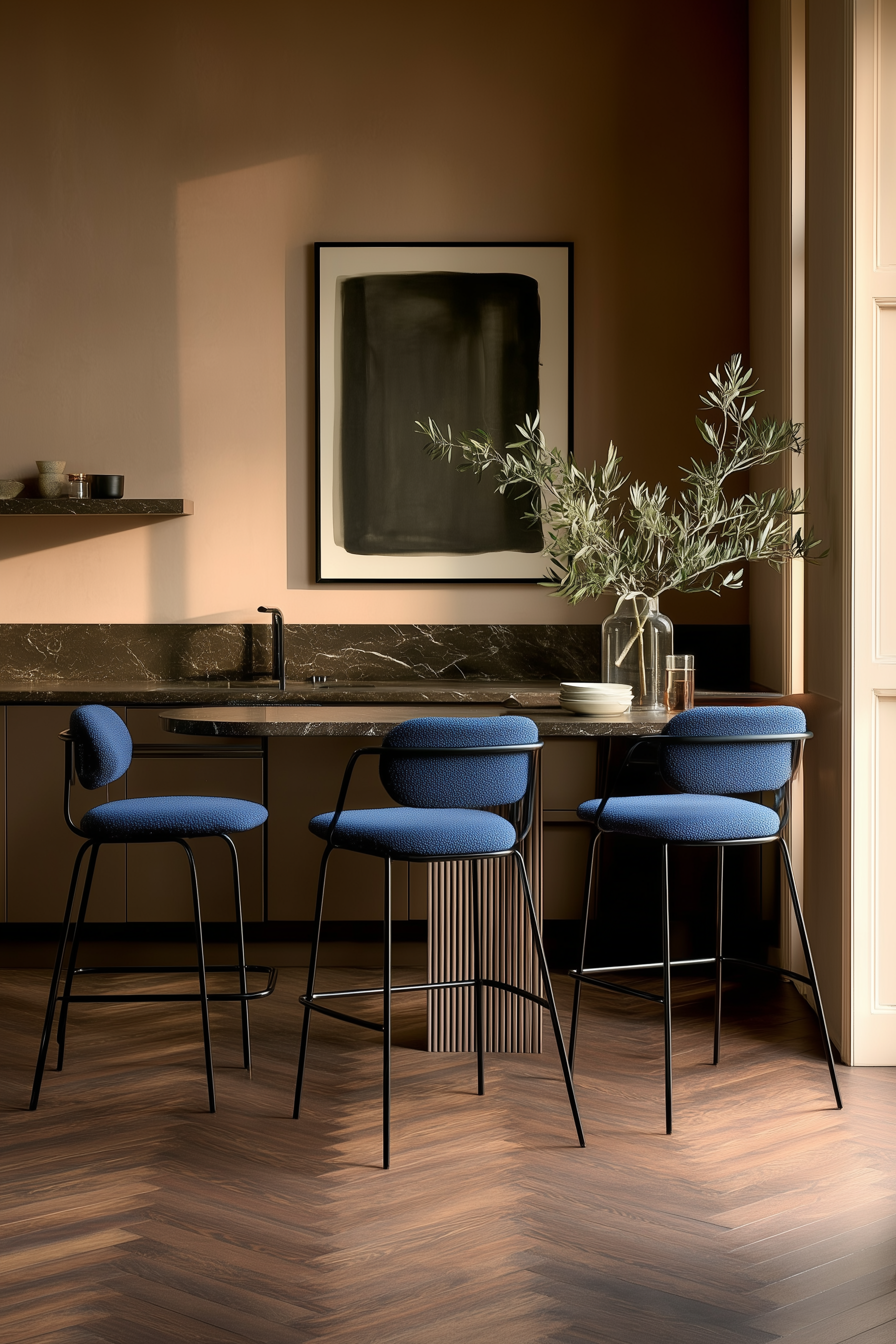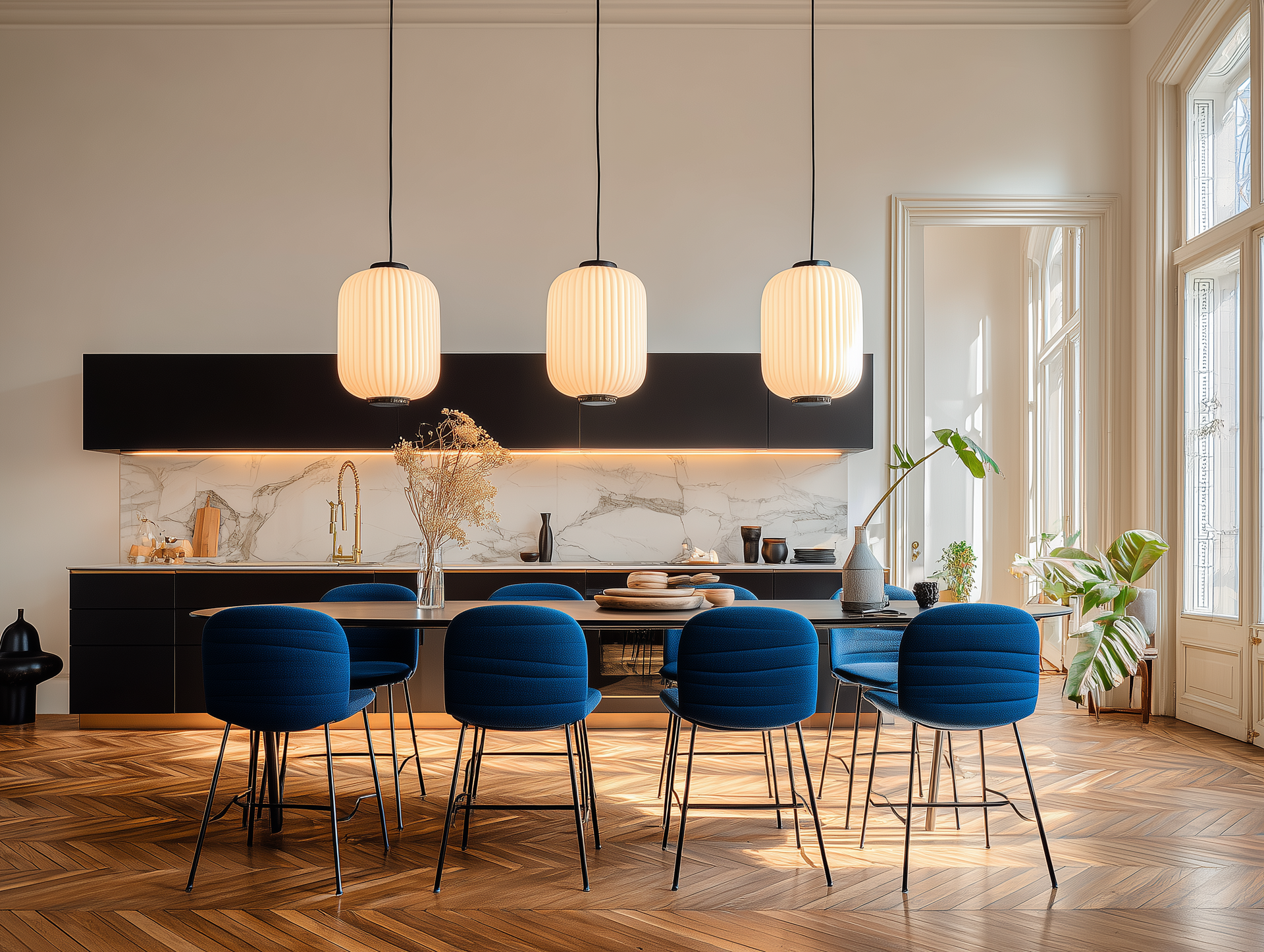 Our main concept was to cover all the walls with “secret victorian paneling” designed by our Studio. What is the secret? Behind the panels we hide functional bespoke furniture such as cupboards, doors, umbrella storage, radiators and others.